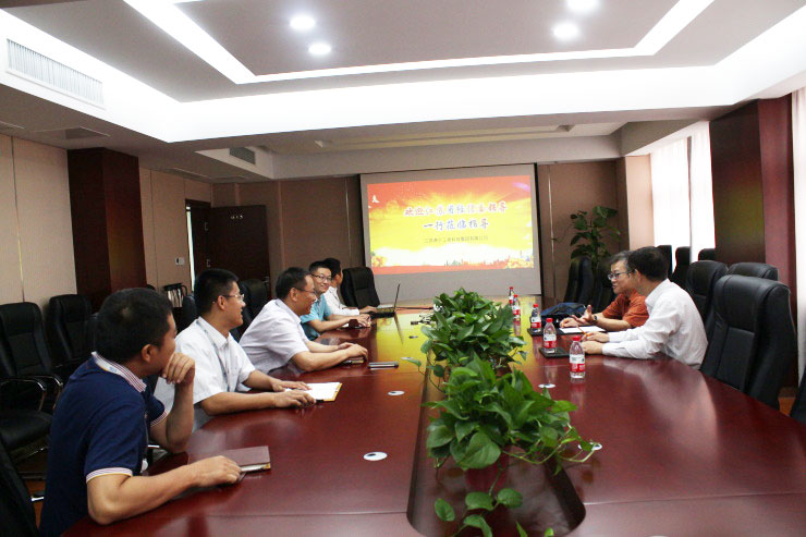 2018年7月27日,江蘇省經信委辦公室張文浩副主任、院集團王軍華副董事長蒞臨江蘇燕寧工程科技集團有限公司考察指導。燕寧集團總經理耿小平、副總經理孫旻及首席科學家王波博士等陪同考察。